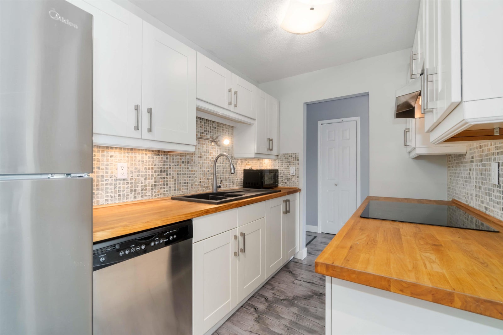 Welcome to Winchester Estates! This beautifully updated 1 bedroom, 1 bathroom GROUND FLOOR unit in sought after Lower Lonsdale features: an updated kitchen with shaker style cabinets, stainless steel appliances, fresh paint, new vinyl flooring throughout, updated bathroom with walk-in shower and a functional open-concept layout that includes a spacious bedroom and cozy dining area. Enjoy the natural light from the bright south-facing exposure and relax on your private covered balcony.The monthly maintenance fee covers cable, heat, hot water. Unit includes 1 parking & 1 storage locker. Ideally situated within walking distance of The Shipyards, Lonsdale Quay, SeaBus, breweries and all that Lower Lonsdale has to offer! This home puts the best of North Vancouver at your fingertips.