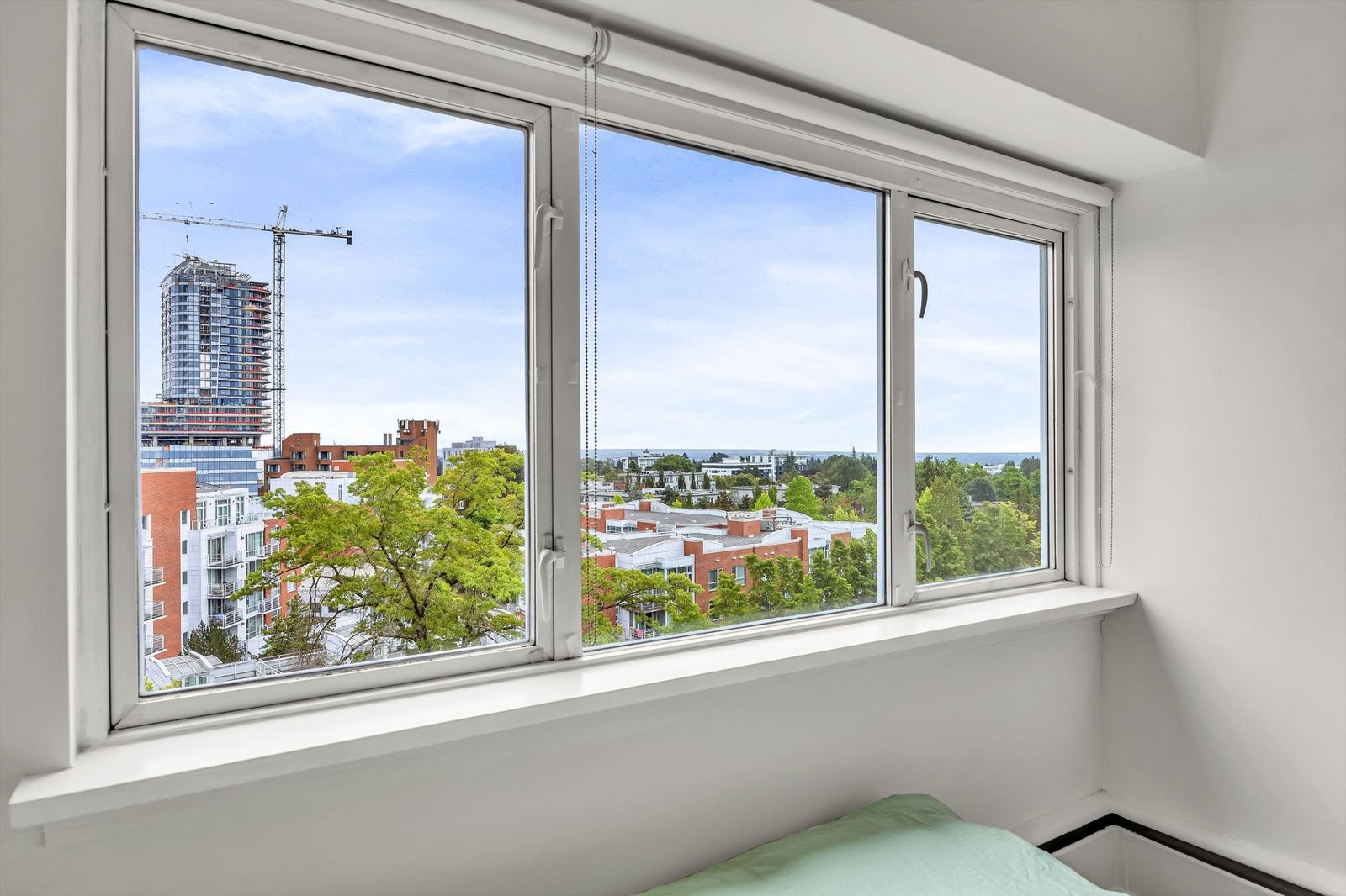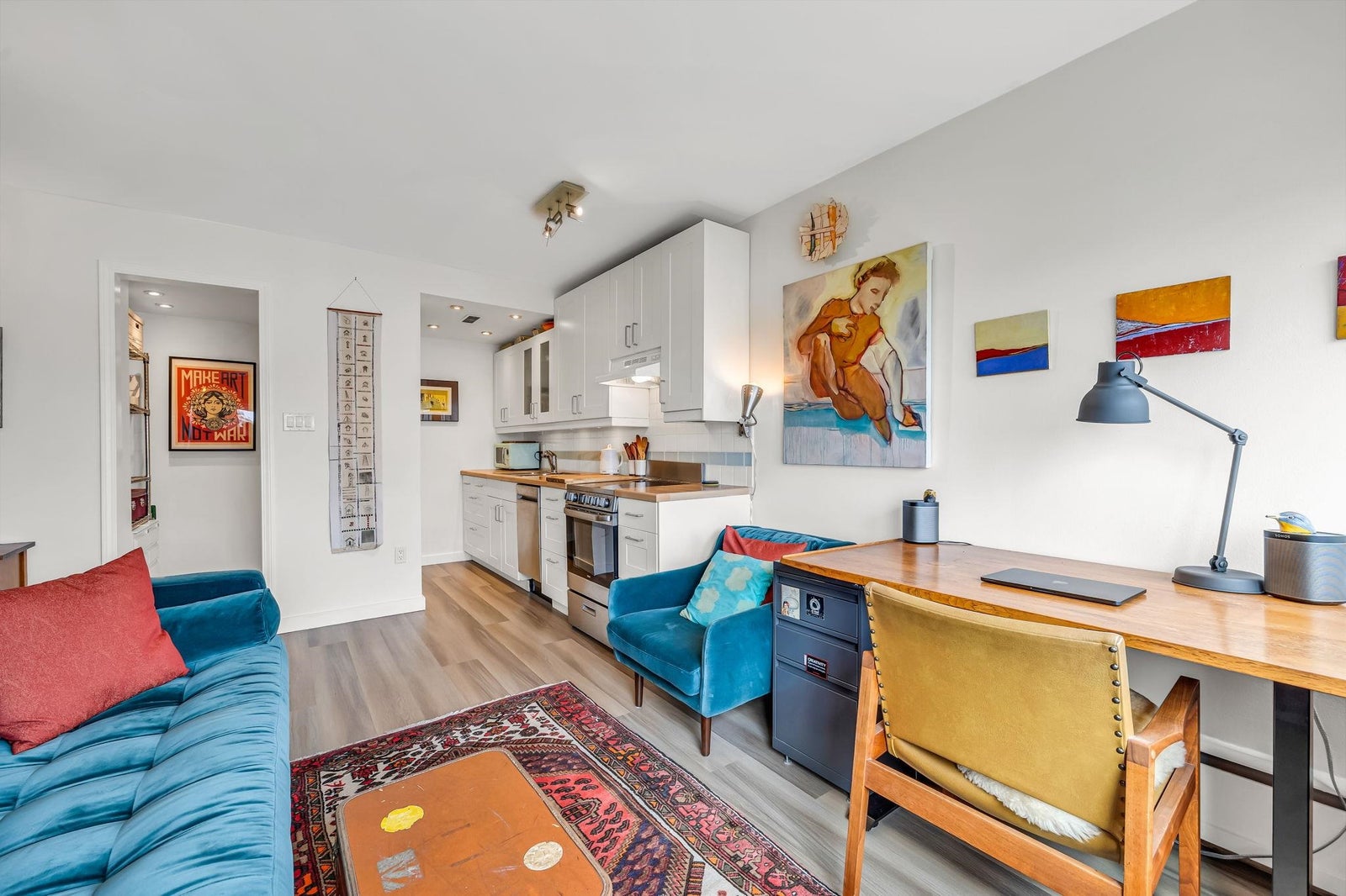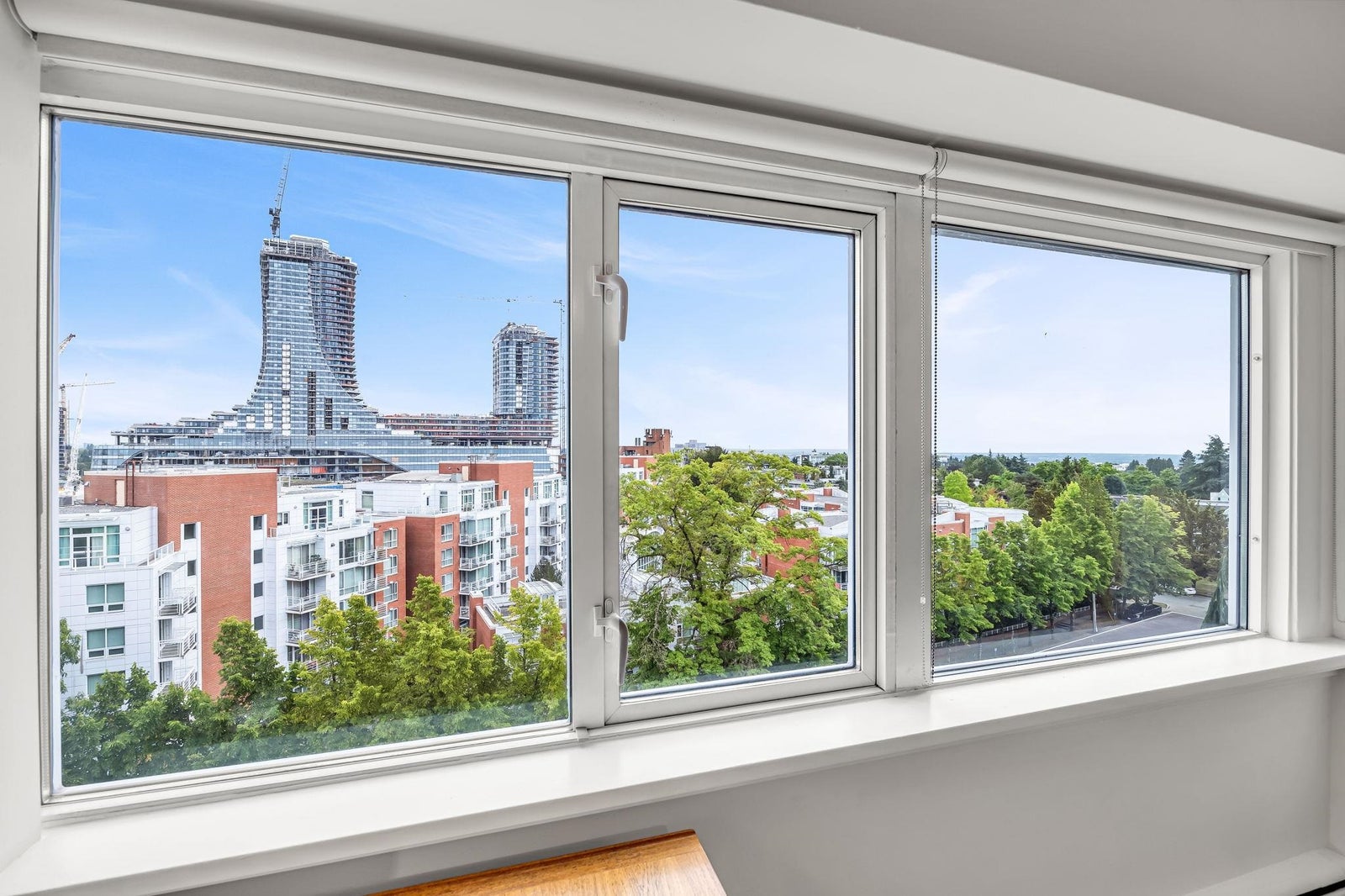 Discover this charming, fully renovated one-bedroom plus den home in the peaceful Oakridge Towers. This bright, east-facing suite enjoys abundant morning sunlight. The generously sized bedroom easily accommodates a large bed, with ample space for additional furnishings and storage. The versatile den is perfect for a home office or walk-in pantry. Just a five-minute stroll to Oakridge Mall and the SkyTrain, offering easy access to downtown and YVR. Ideal for first-time buyers, students, or those looking to downsize. The complex is exceptionally well-maintained. Equity Co-op: 35% minimum down. Call with Co-op questions.