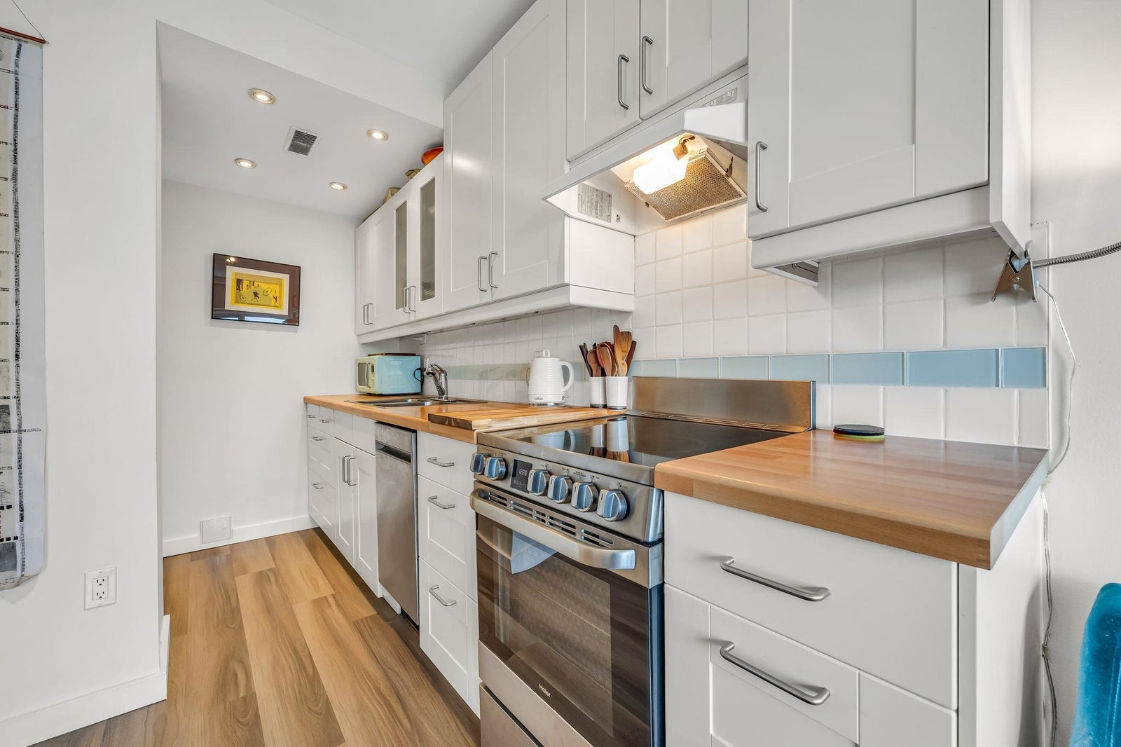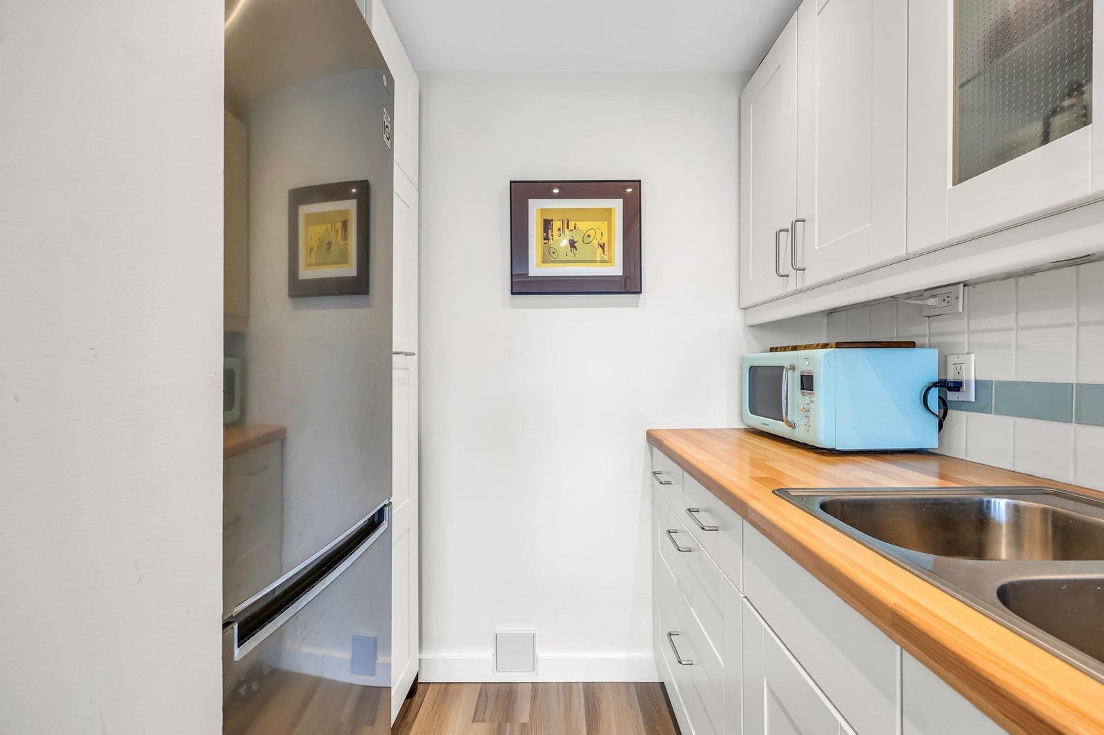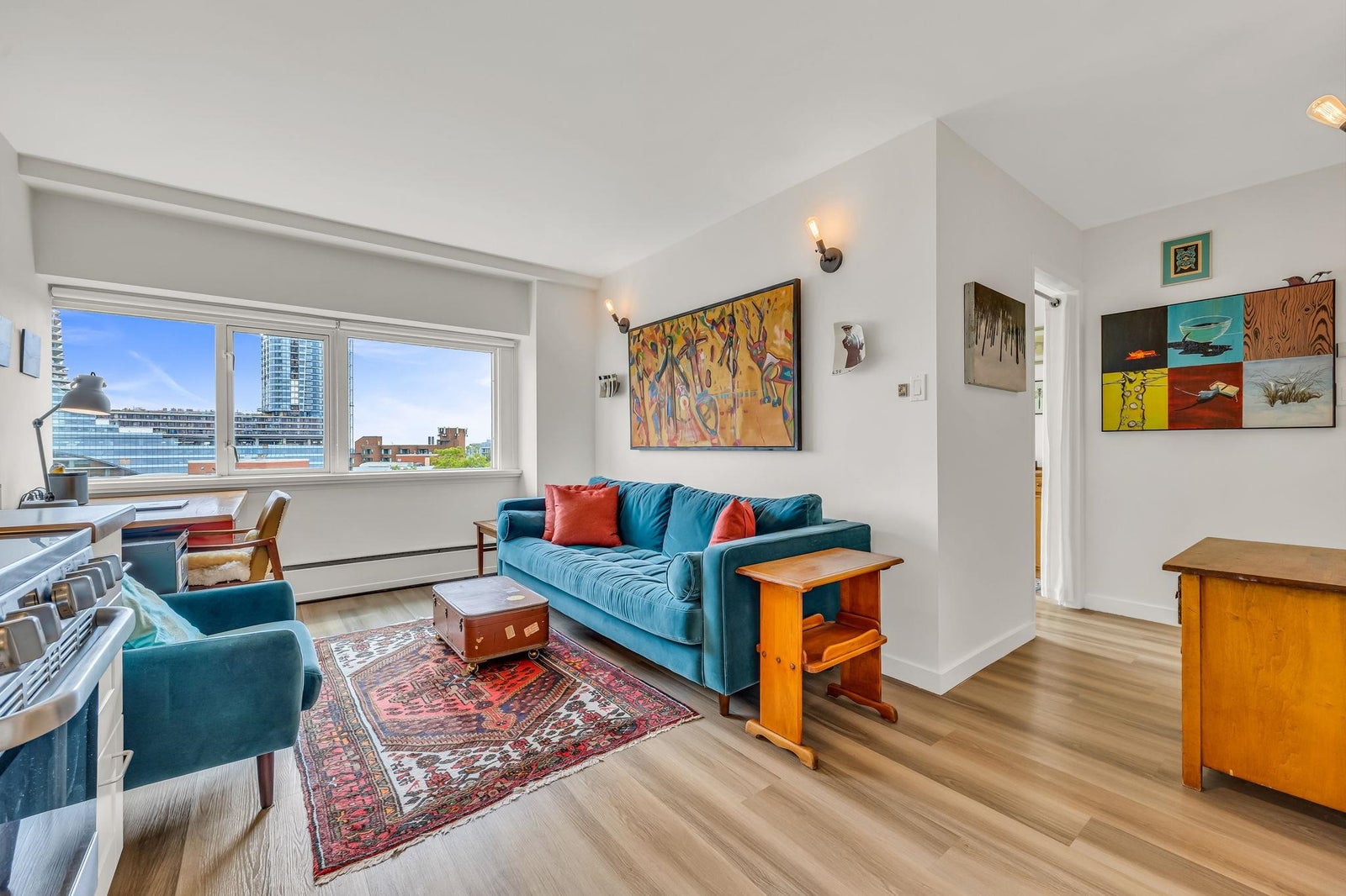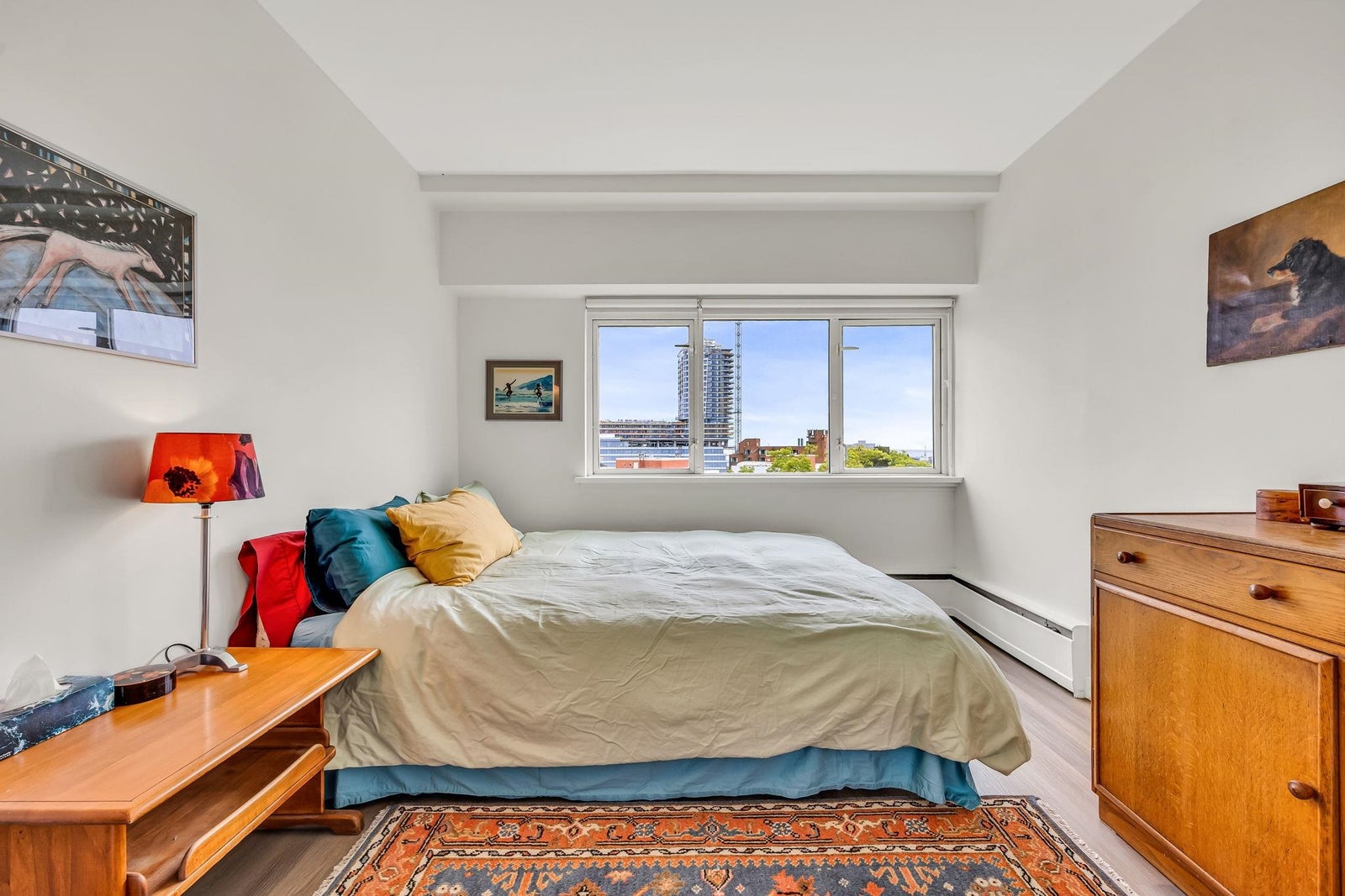 Discover this charming, fully renovated one-bedroom plus den home in the peaceful Oakridge Towers. This bright, east-facing suite enjoys abundant morning sunlight. The generously sized bedroom easily accommodates a large bed, with ample space for additional furnishings and storage. The versatile den is perfect for a home office or walk-in pantry. Just a five-minute stroll to Oakridge Mall and the SkyTrain, offering easy access to downtown and YVR. Ideal for first-time buyers, students, or those looking to downsize. The complex is exceptionally well-maintained. Equity Co-op: 35% minimum down. Call with Co-op questions.