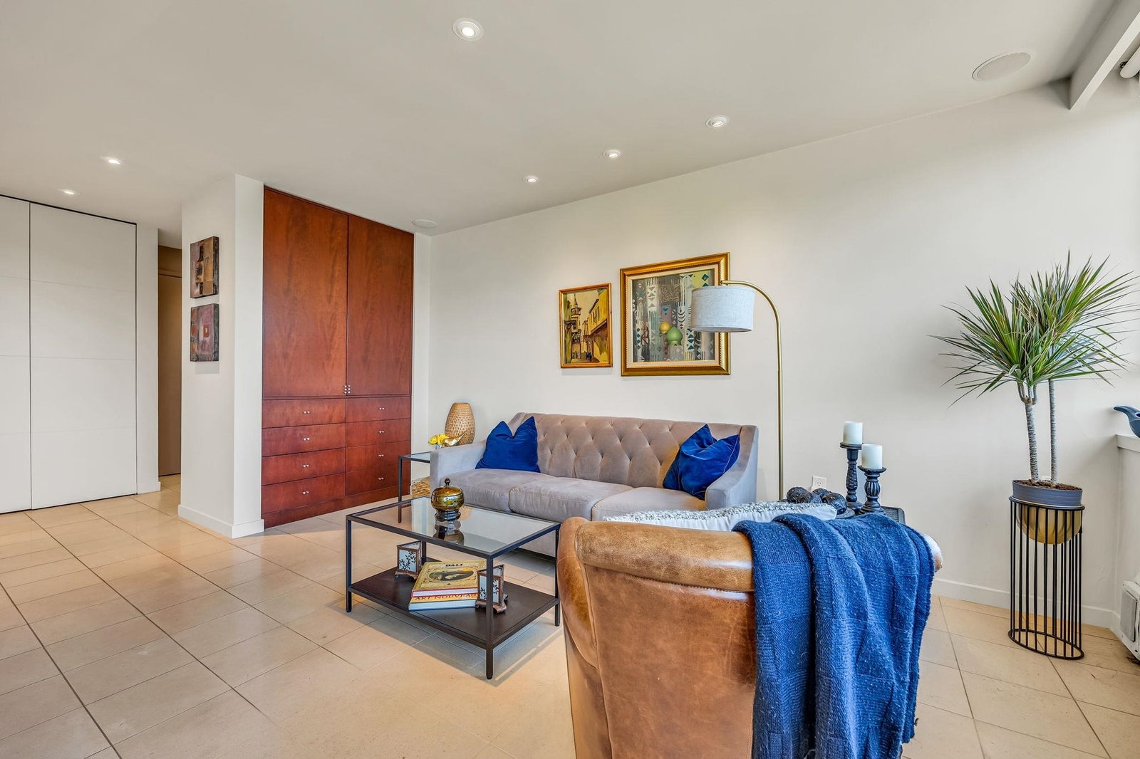 Experience urban living right next to 1,000 acres of lush forest! This top-floor, open-plan 1 BR home delights with truly stunning, unobstructed vistas sweeping over Lost Lagoon, N.S Mnts, and the freighters. Custom millwork throughout, hideaway TV cabinet, ceiling speakers, and art lighting. Perfect for entertaining, the living/dining/kitchen area lets you soak in those breathtaking scenes from every angle. The XL bedroom features built-in drawers and a beautifully finished closet, complemented by a luxurious bath with a heated floor. Step outside to endless recreation: the Seawall, tennis courts, and bike trails. Abundant visitor parking, plus a spectacular roofdeck just upstairs. Includes storage, indoor parking. No pets, no rental, 19+. Private viewings by app